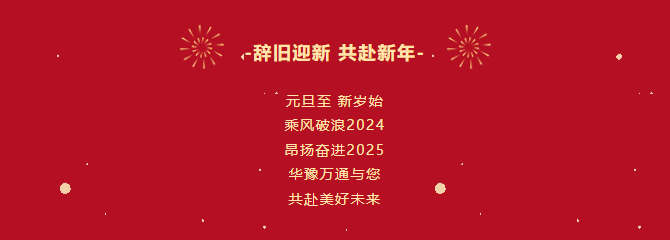 在2025年元旦到來之際,我謹(jǐn)代表華豫萬(wàn)通公司,向關(guān)心和支持華豫萬(wàn)通發(fā)展的各級(jí)領(lǐng)導(dǎo)和各界朋友、合作伙伴、廣大客戶,以及工作在一線的所有員工,致以誠(chéng)摯的祝福和深深地感謝!未來之路,我們同行,把握趨勢(shì),乘勢(shì)而上,聚勢(shì)共贏,馳騁未來。